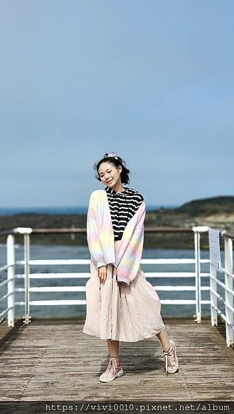 倚靠欄杆邊就好像自己徜徉在這片湛藍大海中!!雖然冬天東北季風強勁,但飛舞的秀髮跟裙襬又能拍出特別的美感