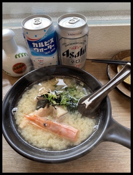 溫醇潤口的味噌湯底加入有蝦頭、魚骨肉、蘿蔔、海帶芽、蔥花等新鮮好料