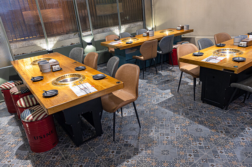 採用負壓空調設備,讓燒肉時所產生的油煙不會一直停留在室內環境內,所以吃起來對肺部也比較健康,也比較不會帶著一身油煙味離開。