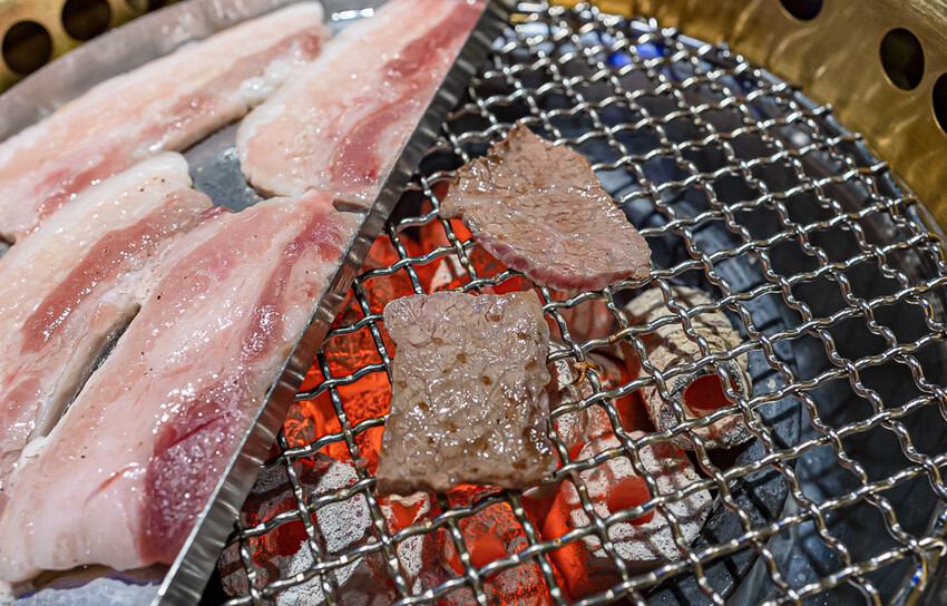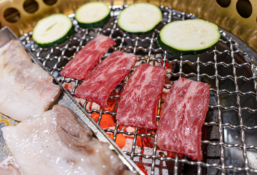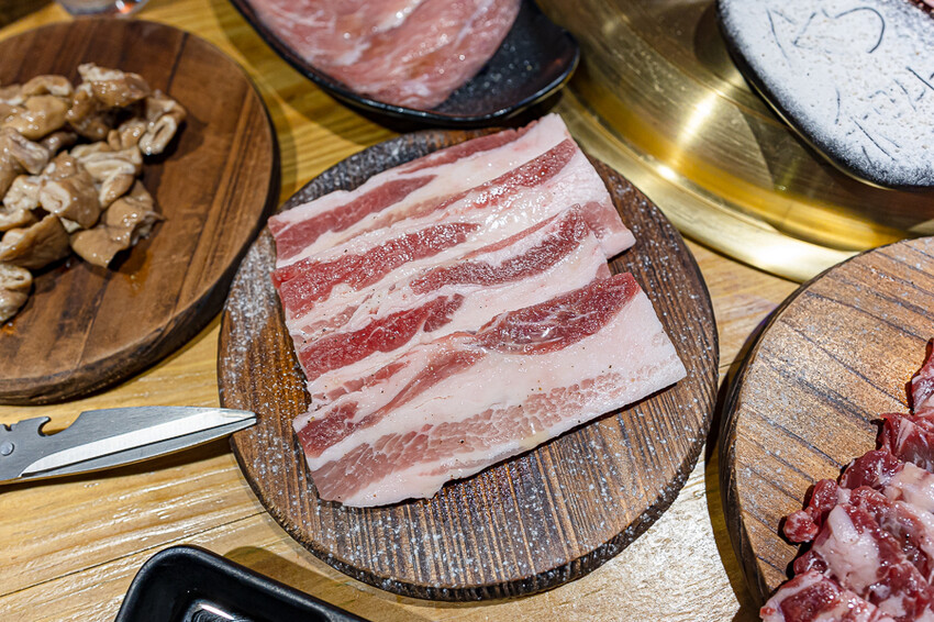 牛五花我也是到單點燒肉店必點的品項,然而米炭火的牛五花油花十分勻稱,吃起來肉質超軟嫩,只要烤到血水冒出後翻面一會就可以吃,此時吃起來超棒!簡單好烤又好吃的必點肉品。