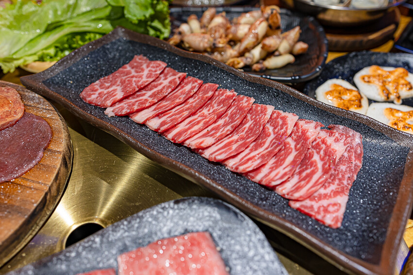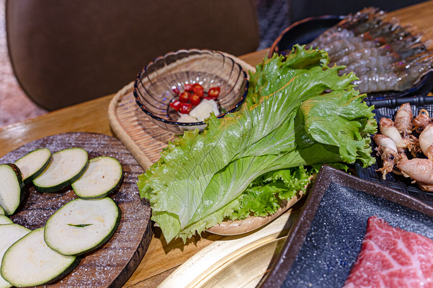 店內牛肉來自於1855美國擁有150年歷史的牧場,日本和牛使用最高等級A5和牛,豬肉則採用台灣頂級豬肉活菌豬,海鮮是澎湖直送,所以牛、豬、海鮮都給他吃吃看!再來是店內主打的A5和牛更是一定要的,今天的晚餐超級豐盛。