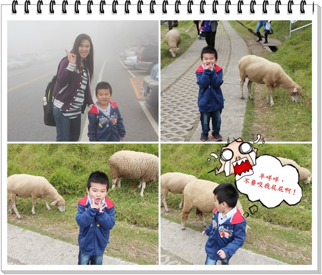 清境青青草原到了,真的滿山都是羊咩咩耶!!羊咩咩真的好可愛喔!但是走路要小心唷!一不小心就會踩到「羊露丸」,可能是山上比較空曠吧!所以「羊露丸」沒有印像中的臭~~