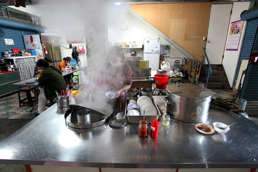 料理台上放置鐵製蒸籠來蒸粽子,還有ㄧ大鍋味噌湯供選擇享用,料理台檯面維持很整潔衛生上安心。