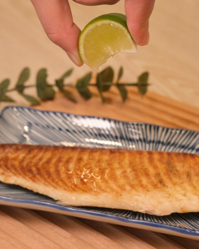 ▼新鮮的整尾鮮嫩鯛魚,可以選擇舒肥和烤的料理方式,烤過的魚肉依然保有水份,單吃就相當鮮美無腥味。