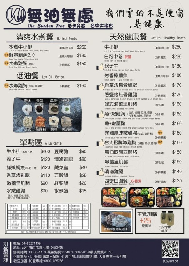 ▼【無油無慮低GI弁當】在全台共有多家分店,近期新開幕的台中西區大墩店,鄰近sogo百貨和精明商圈一帶,是許多上班族用餐的好選擇,開車可停放於對面的收費停車場。