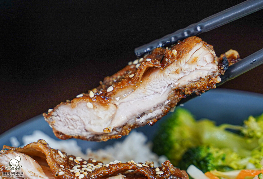 肉排上面的肉汁、醬汁會附著於米飯上,讓米飯帶有炭香與醬汁香氣好吃不油膩