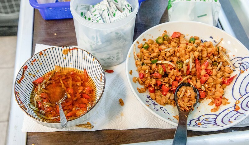 最後要推薦的是這碗30元的梅干菜,這梅干菜可以單吃因為水分頗足,可以配著店家自製的辣椒,也可以配著滷肉飯一起,都非常正點。