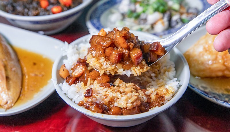 要說,我當然是為了這碗滷肉飯的醬色而來,金黃肥肉丁,看著聞著就口水不住的嚥,入口是油化後的鹹香中透著微甜,好吃得亂七八糟,同時飯也煮得相當有水準,而且吃到最後一口都不會太過鹹或是油膩。當然這會不會膩和好不好吃一樣主觀便是。總之,這一碗滷肉飯是近期我吃過最好吃的,這才有了久違的滷肉飯文。
