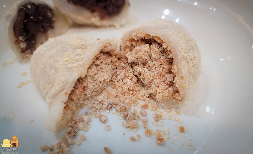 比較特別的是這個花生麻糬吃起來鹹鹹甜甜,麻糬皮帶點鹹味,搭配口感分明的花生餡料