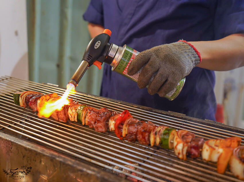 看到烤台正在燒烤超長的火焰武士刀串燒,也忍不住點了一份!!先用噴槍將表面先炙燒鎖住肉汁,再慢慢燒烤,陣陣的醬香烤肉味…引人食慾。