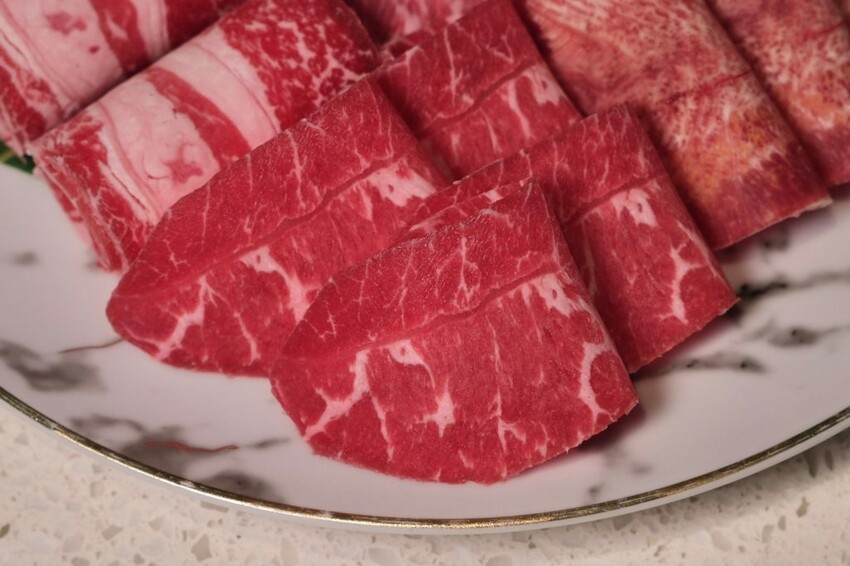 ▼套餐除了牛肉之外也有豬肉、雞肉和鴨肉品項,豬肉嚴選有著「豬肉界和牛」之稱的1893黑豚,全程不用藥僅施打疫苗養成,以高規格的把關及安全飼養,是台灣唯一可以不用吃全熟的豬肉。