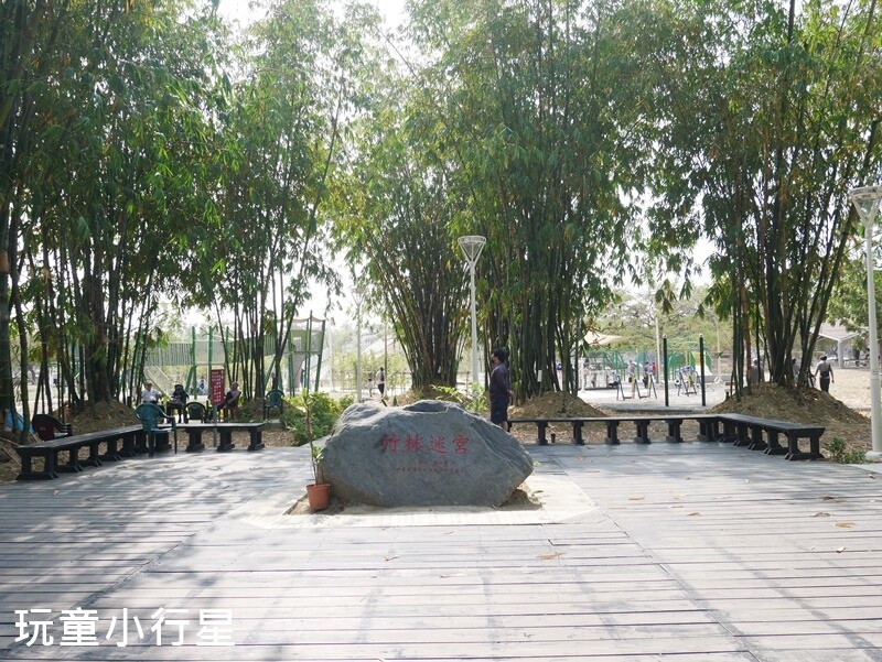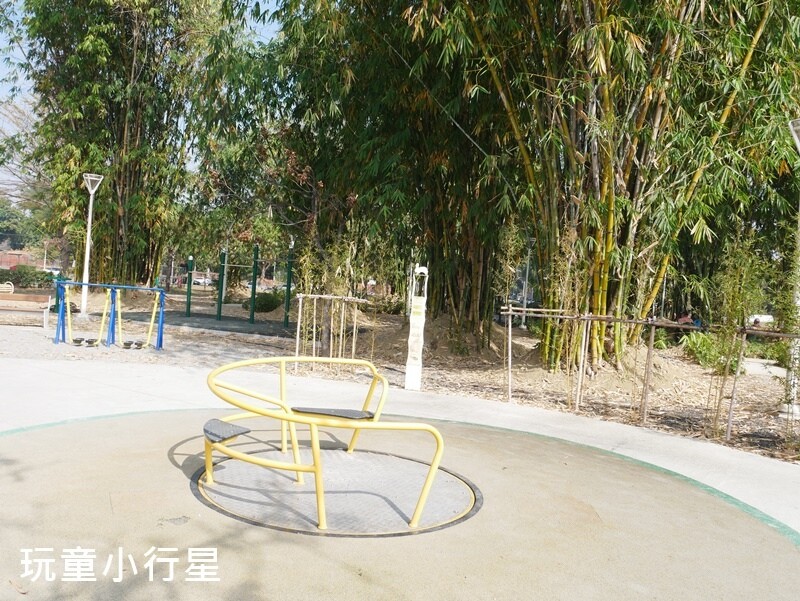 竹子造型滑梯後方就是竹林,有設置座椅,非常涼爽。