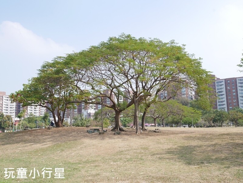可惜樹冠小,未能成蔭,白天遊玩較熱。