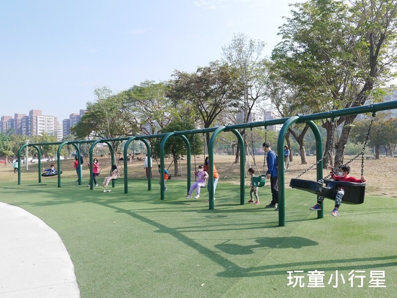 高雄的公園有好幾處都是這樣子設計成一整排的鞦千,我覺得很棒,多種款式可以一次玩齊。
