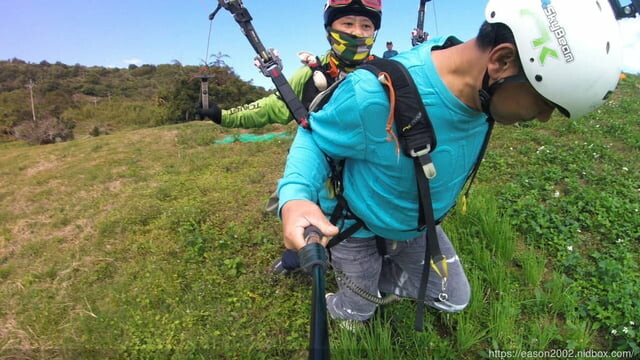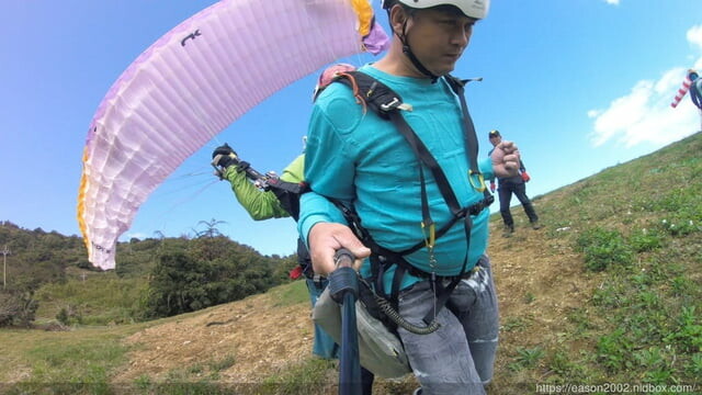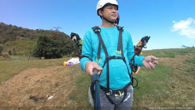 第一次體驗飛行傘,我跟老公都好開心,回來的每一張照片,都有小故事,老公說著:一開始要背飛行傘助跑起飛,笑著說,我們看到電視裡面女明星軟腳會怕就是這裡,飛行傘有點重量,需要花費一些體力,老公說還好平常工作都有在消耗體力,所以身體還不錯,跑起來不會太過吃力。