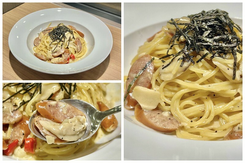 麵條表面沾裹濃郁的白醬,每一口都很夠味,麵條不會乾乾的,相當濕潤的口感,搭配蕈菇跟香腸一起吃,口感超有層次感,一大盤只要160元可以說是相當划算!