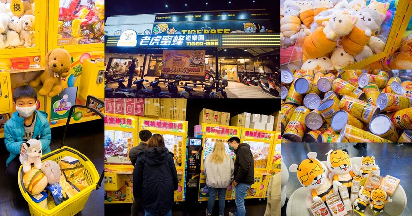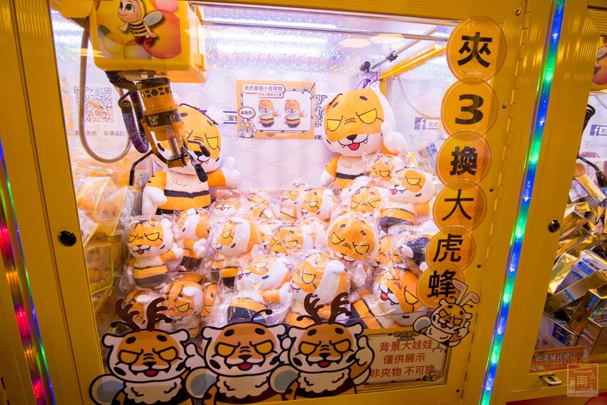 『老虎蜜蜂遊樂園』娃娃機王者百台機器任你夾,隨時可以請店員幫忙補貨,眾多產品不斷上新,有餅乾、飲料、零食、娃娃。