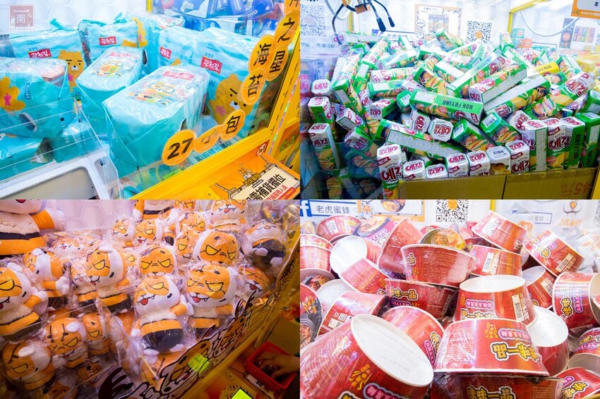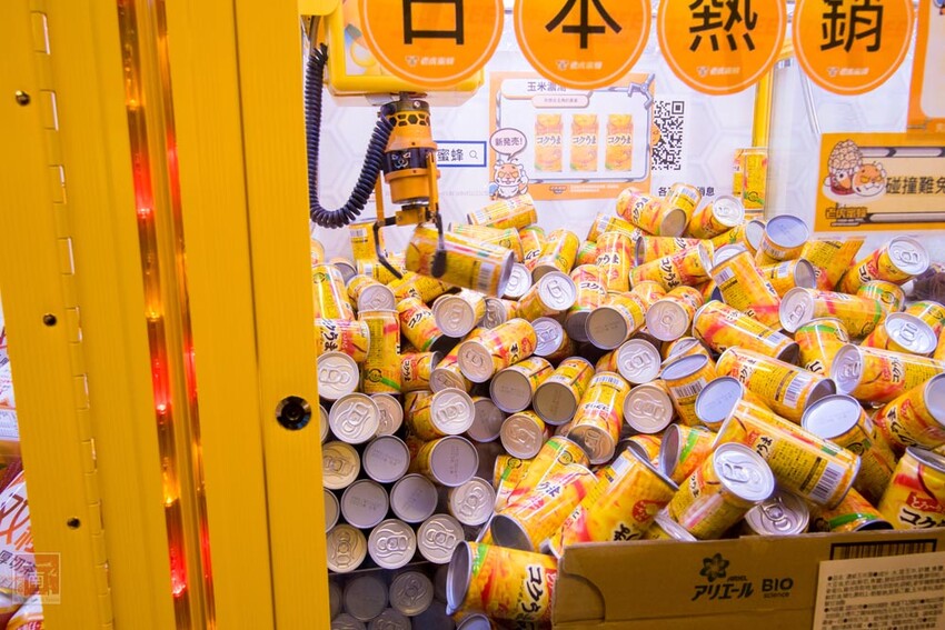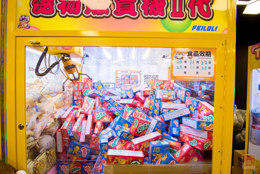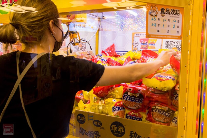 換完代幣先不要急,先逛一圈看看有什麼東西可以夾,有零食、飲料、泡麵、娃娃、金馬品牌義式冰淇淋品牌聯名等等,也有日本進口的商品及獨家限量老虎蜜蜂獎品,而且眾多產品不斷上新,每次來可以夾的商品都不太一樣。
