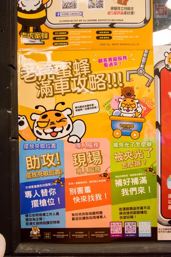 也因為上網看到『老虎蜜蜂』粉絲團上寫著『場內遊戲皆為技術與運氣獲獎,純屬娛樂性質,若您非常想要獎品,建議您至他處選購!切勿過度沉迷消費』,個人覺得老闆以這樣的觀念教育消費者我覺得蠻不錯的,夾娃娃算是生活中的小樂趣,但不要過度沉迷,而且老闆也著重在參與公益活動,個人覺得蠻棒的。