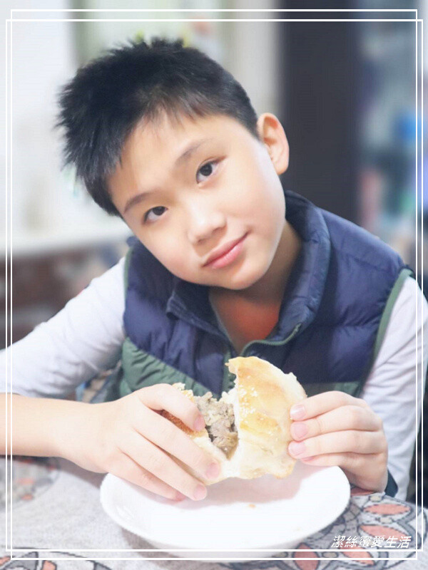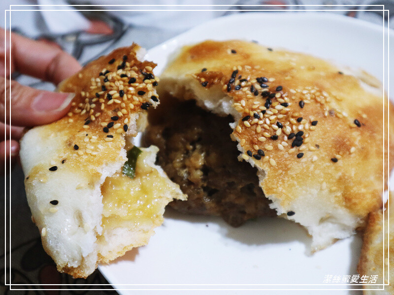 表層麵皮依然是微微硬酥有嚼勁那種,但裡頭肉餡帶出的微微湯汁溼潤了內層,吃起來不乾口。