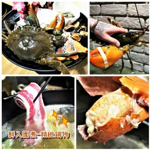 海鮮系列的鍋物有蛤蠣/鮮蚵/透抽/鯛魚/鮮蝦/鱸魚
