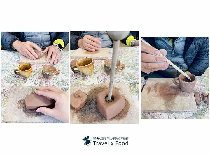 既然園區有那麼大一座窯,不玩一下捏陶就太可惜了,這可是我們夫妻倆第一次同框體驗捏陶樂,