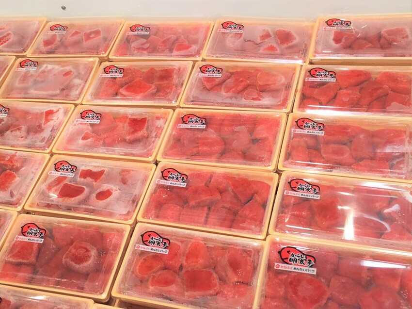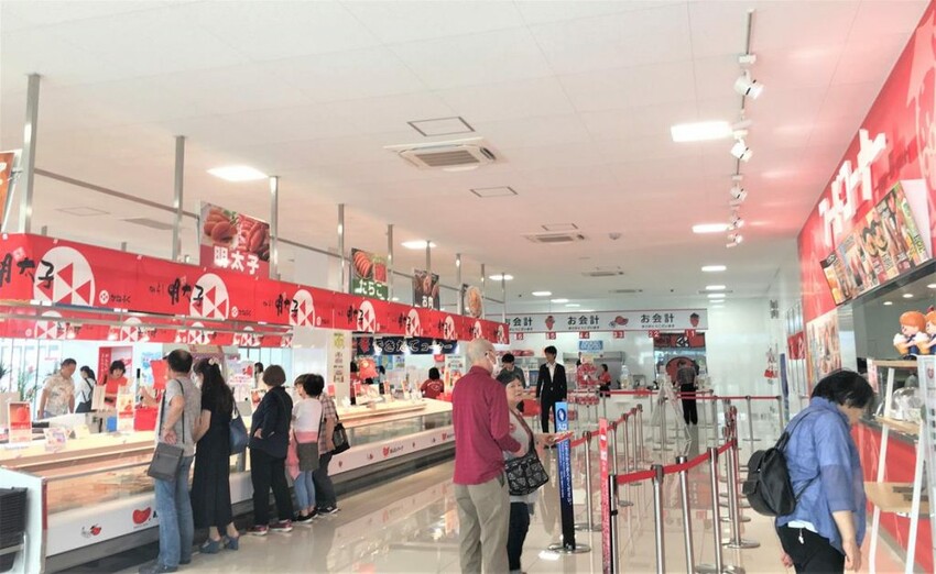 在工場展示外,有很大的販售區及小吃店。你可以試吃新鮮製成的明太子,以及選購各式各樣明太子口味食品,例如冷凍的明太子、明太子香腸、明太子蛋黃醬等等。