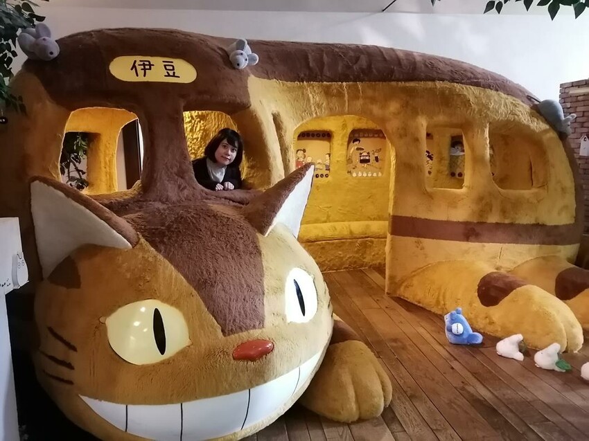 在博物館的2樓通常會舉行特別企劃展,這次小編到訪時就在舉行吉卜力動畫《龍貓》的主題展覽,因為大受歡迎,已是第3次舉行,除了有用玩偶製作的龍貓場景,最吸睛就是這座巨大的貓巴士,讓你可以體驗坐在貓巴士的感覺。毛絨絨的貓巴士讓小孩們都很興奮,趴在貓頭上玩過不亦樂乎。
