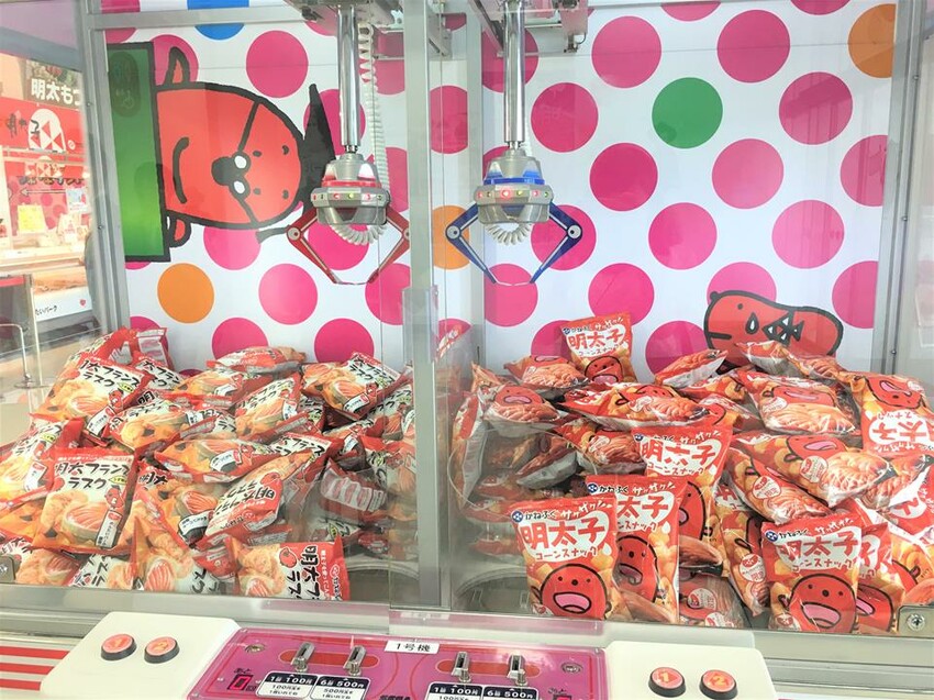 在工場裡還有一個推薦點 – 就是抓零食機了!100日幣一次機會,機器內的兩款明太子零食都是工場限定,平常想買也買不到!跟其他遊戲中心,這裡的抓比較有力,所以很容易抓到,我都只花一兩百就抓到了!大家也挑戰一下吧!