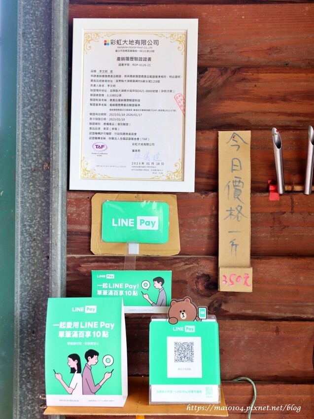 來到舞夜天草莓園,除了現金支付外還可以使用LINE PAY行動支付