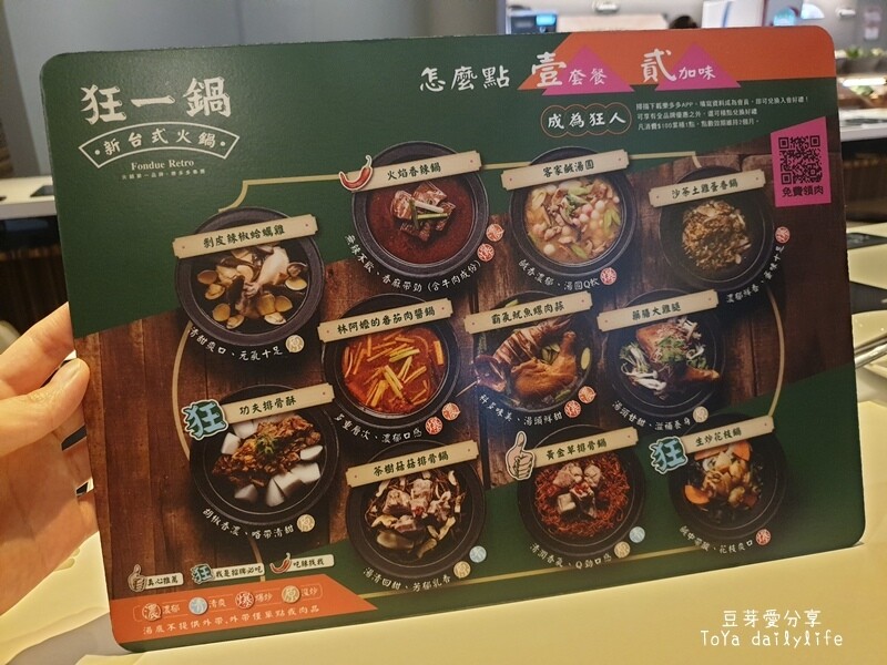 ▲狂一鍋菜單 (擷取自「狂一鍋粉絲團」)