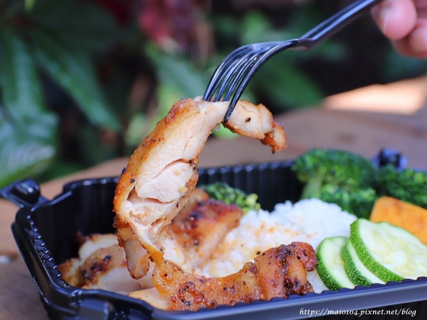 無骨雞排餐盒內容物有無骨雞腿排、雞汁飯、花椰菜、櫛瓜和南瓜