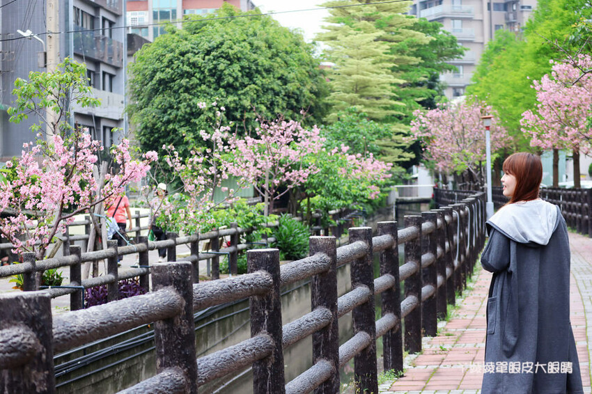 汀甫圳賞櫻步道開得好美,粉嫩的櫻花好療癒呀!有一點點置身日本賞櫻的感覺耶!去年還有人穿和服來和櫻花合照呢!