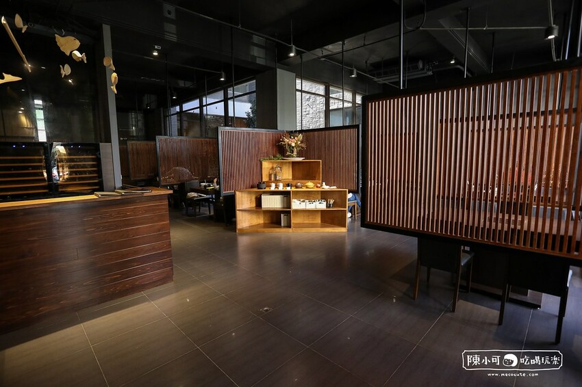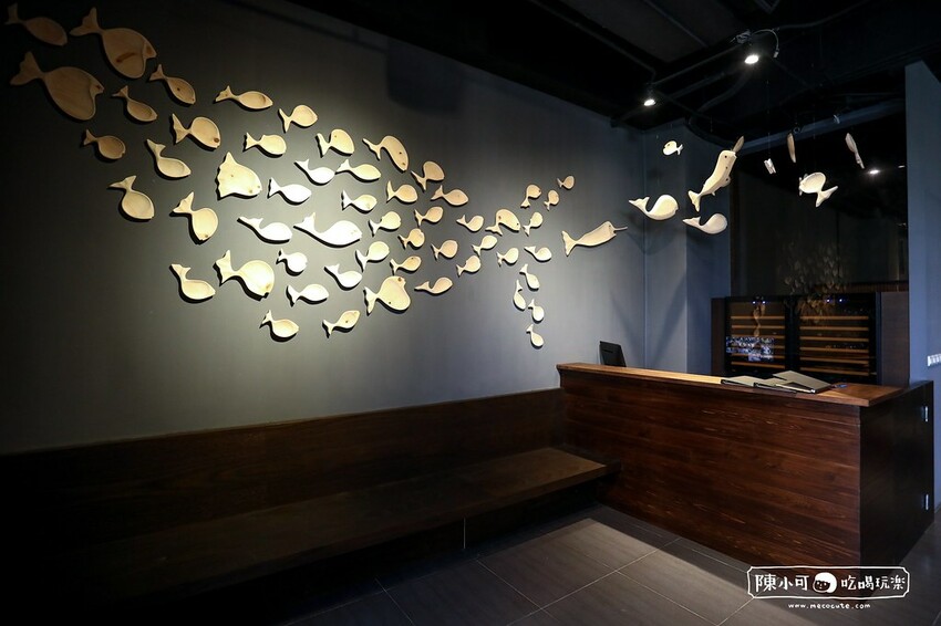 走進店內看見櫃檯旁的牆面以木雕魚群樂悠悠營造意境,彷彿象徵火鍋店提供美味的海鮮,沈穩內斂的藍色訴說著海洋神秘。