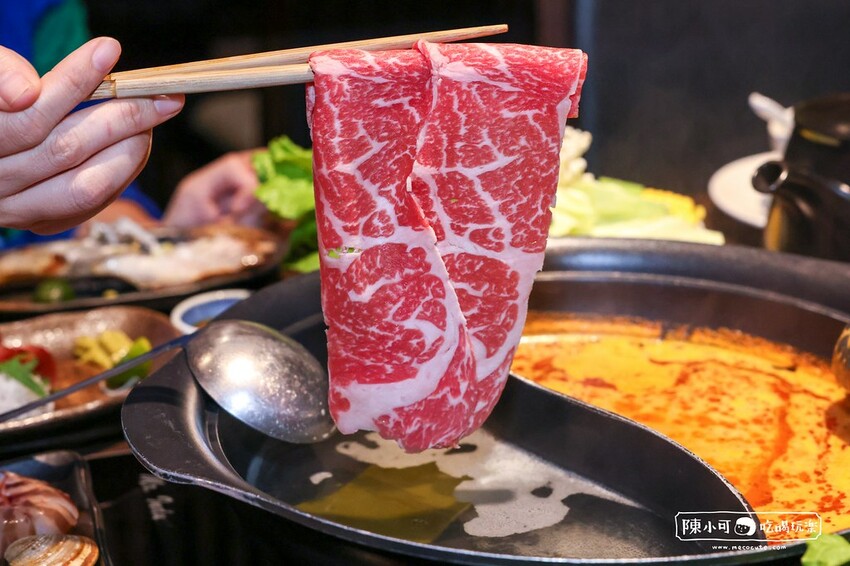 略有厚度的牛小排,肉質厚實,油花分布均勻超迷人,入鍋涮到七分熟,口感細緻軟嫩,肉香讓人回味。