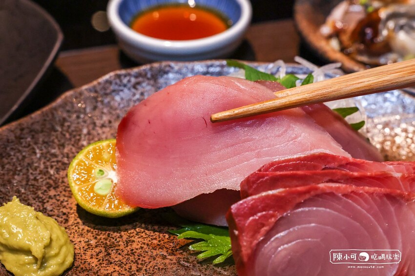 菜單的刺身會依當天食材供應,這次吃到煙仔虎和紅甘,口感滑嫩細緻,配上酸甜可口的調味醬汁或芥末,一百分的美味,這真的超正點!
