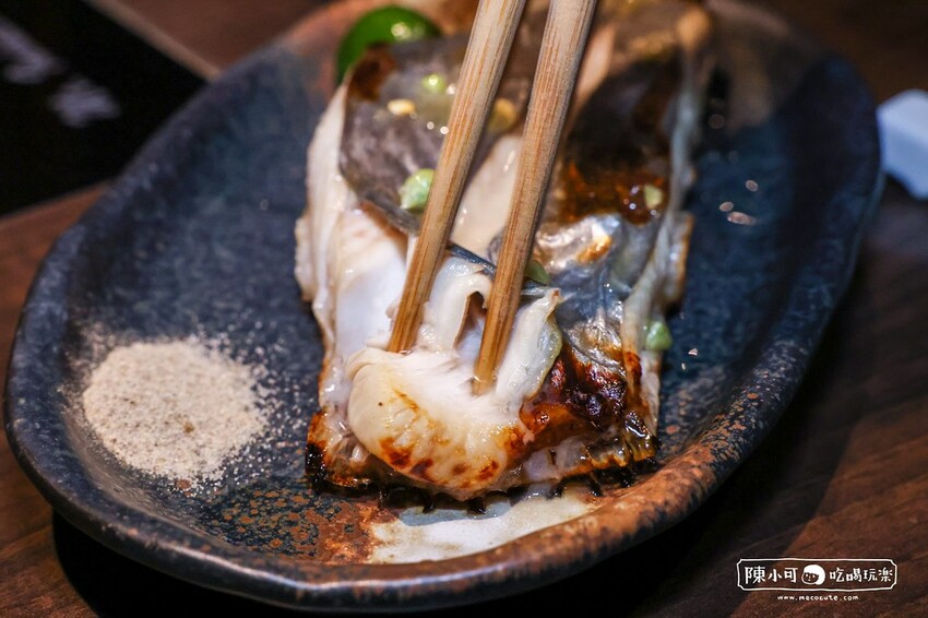 魚肉豐厚又嫩,筷子夾下去就出汁,細緻又鮮甜,加點胡椒鹽或吃原味都非常可以,魚皮滑口又Q,口味讓人印象超深刻,問了店員才知道這天吃的烤魚叫做雨印鯛,相當特別!應該是我第一次吃到這魚吧~