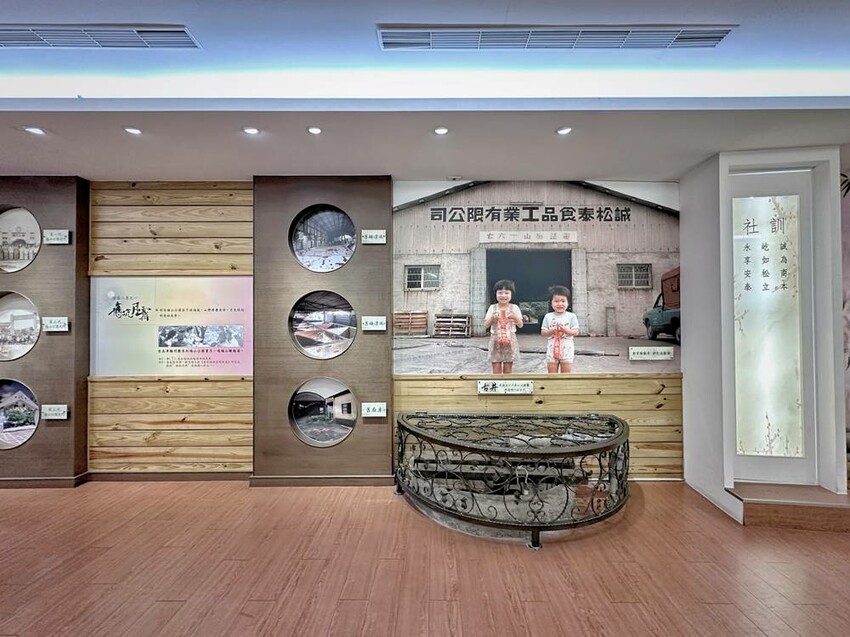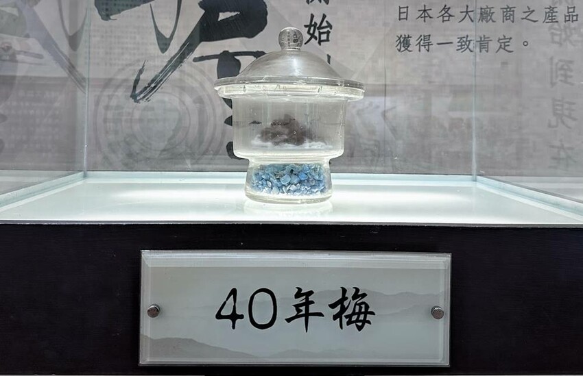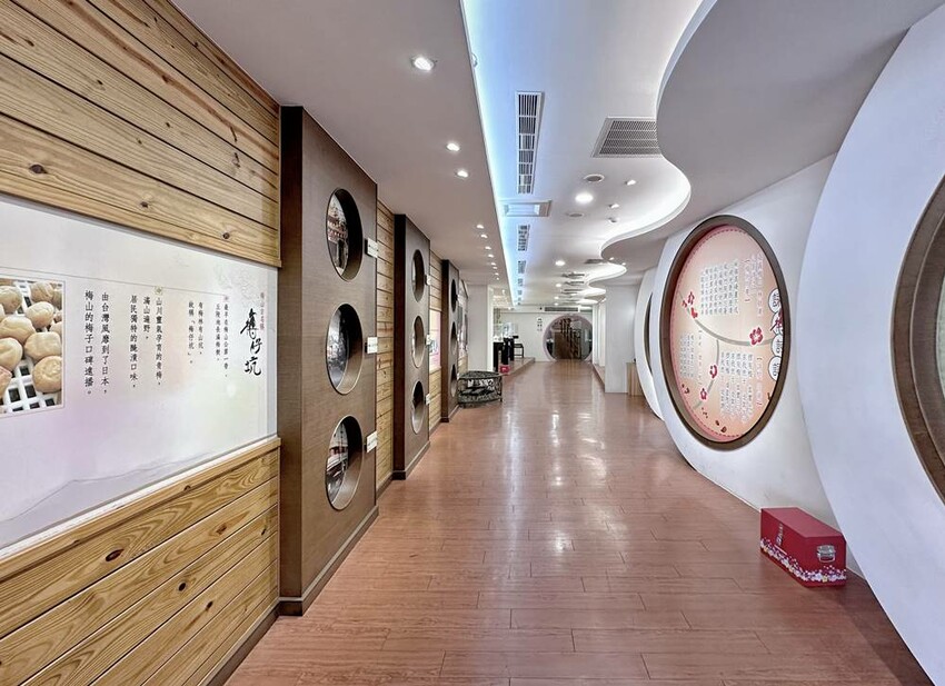 走進時光隧道,廊道兩側有著梅山的歷史、公司的歷史簡介、梅子的營業成分、好處等各種知識。接著可以走上空中走廊觀看醃梅池,這容量超大,據說他們全盛時期可有100多個大小醃梅池,最大的年產量快2200公噸,大約有2.2顆的青梅,而梅子鹽漬在池中是不會壞,醃漬大約30天後就可以開始加工。