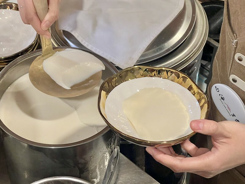 店員剛蒸好豆花,聞到陣陣的豆花香氣,口水直流真的好誘人喔~白泡泡幼綿綿的豆花,軟綿細緻的質地跟一般常見的豆花的口感不同,觸感柔軟許多