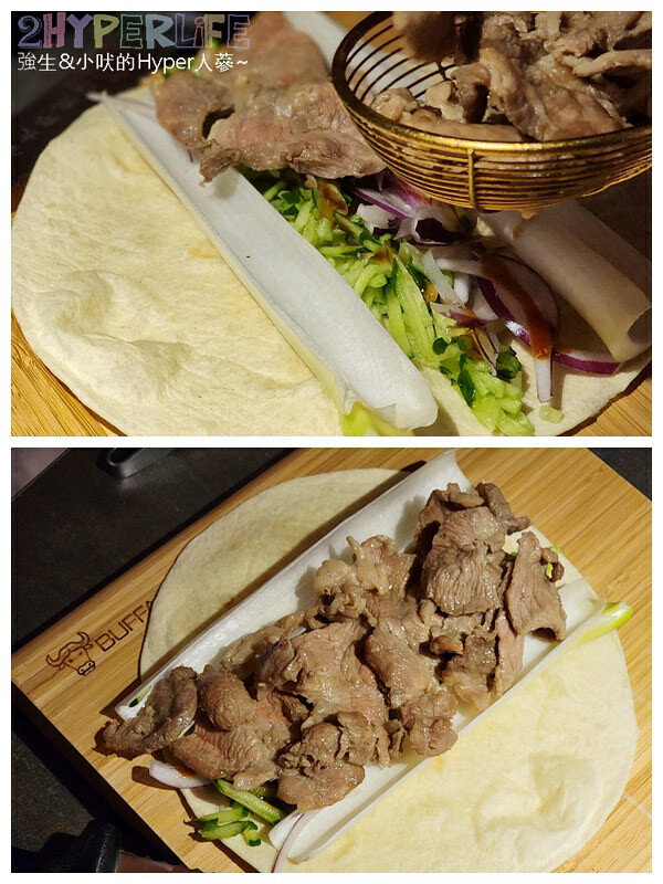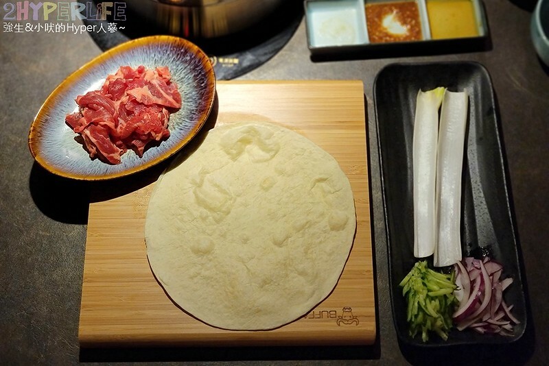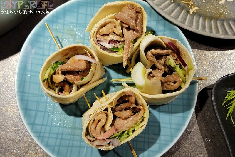 這是當晚我們唯一吃的豬肉,但其實目前為止已經很飽了,還好這個不是每個人都一整片。但這份餐點來到桌邊服務還真的滿特別的