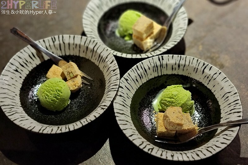 終於來到另外一個胃的世界,甜點是黑糖蕨餅佐抹茶冰淇淋,強生很喜歡他們的抹茶冰淇淋耶,沒有一般生冷的口感,反而多了滑嫩和香濃氣味,為這一餐劃上個美好的句點。
