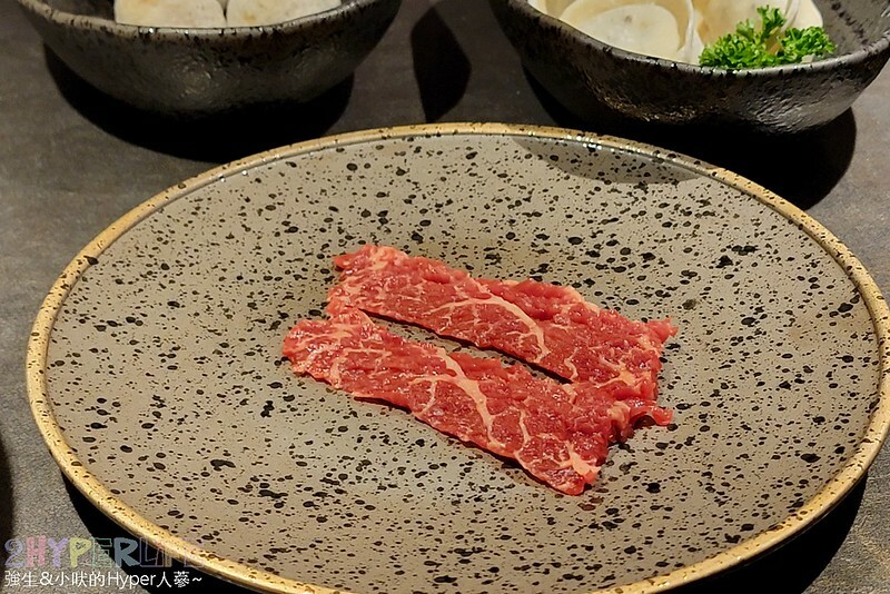 這兩片是一潤出的腹排肉,為何只有兩片呢?因為服務生說這兩片他會拿來demo涮肉給我們看,讓我們知道怎麼涮、要涮幾秒、怎麼看顏色才是最佳的享用方式。會不會太浮誇了?還有demo呀