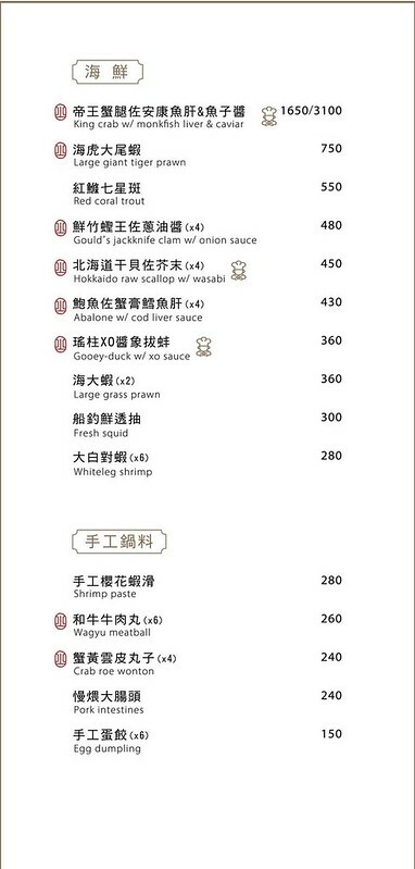 大鍋的黃金山椒湯底,一開始單喝湯頭會覺得蠻辣的也辣得很過癮,不過拿來涮鍋料和海鮮其實就不會覺得辣度那麼高囉!