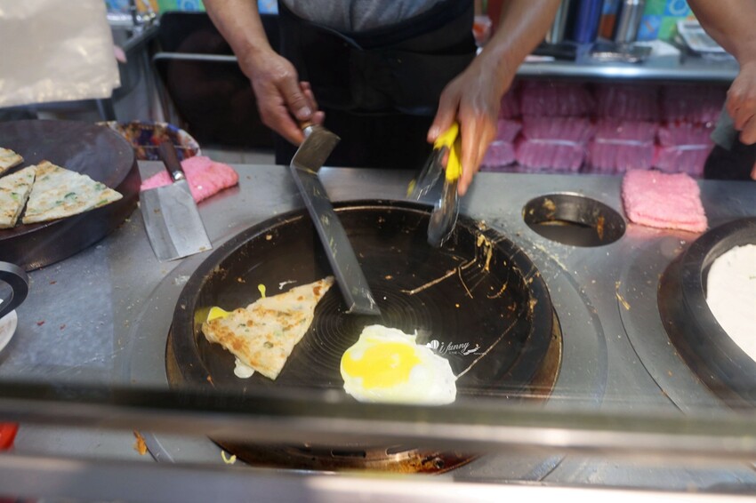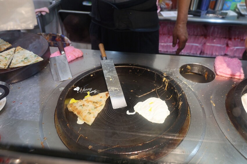 另一個則是加熱現場客人點的蔥油餅,有見到嗎?加蛋是加一整個蛋!不是用打散的蛋液喔!