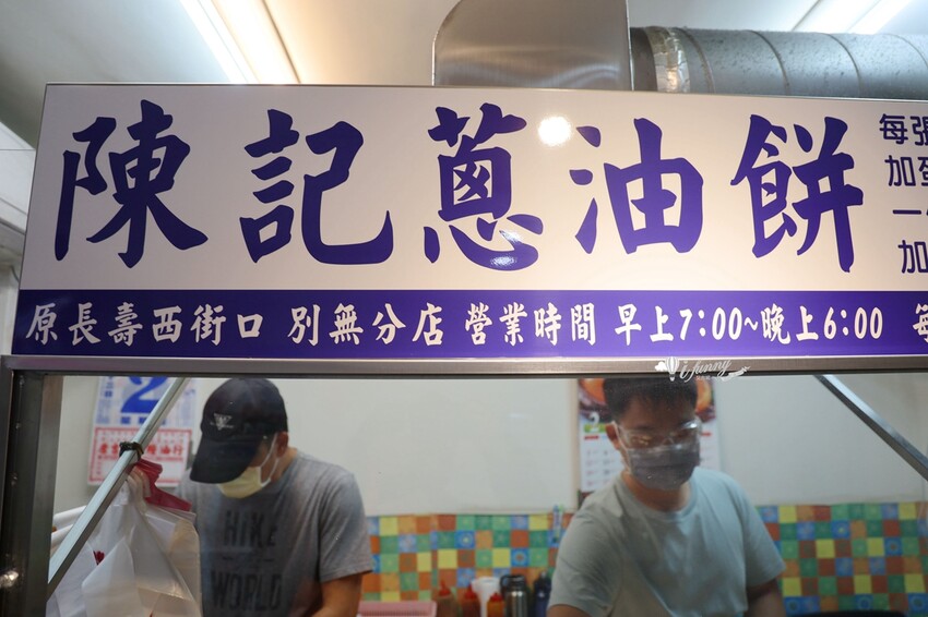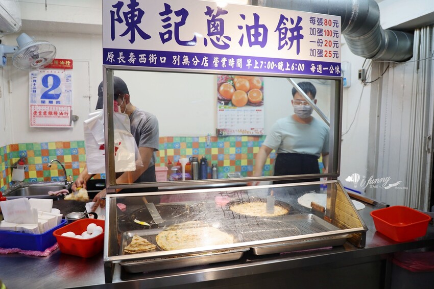 陳記蔥油餅的新店面,有玻璃門窗,攤車也有壓克力板隔絕,比之前路邊攤車時衛生安全許多,令人也多了一份安心。下午茶時間,已經開始有排隊人潮。