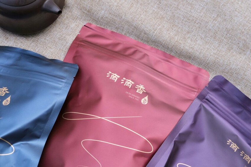 ▼【滴滴香】冷泡茶系列以質感風格包裝,選用與自身茶種顏色近似的色調,無論送人還是自己喝都很適合。