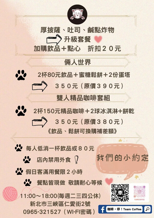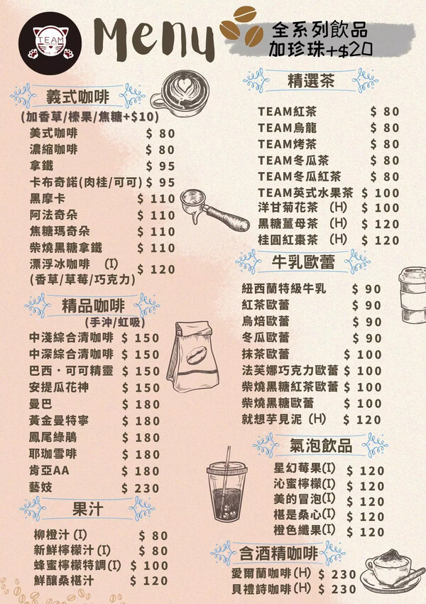 (以上菜單資訊來源:咖啡。停!Team Coffee粉絲頁)
