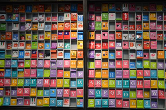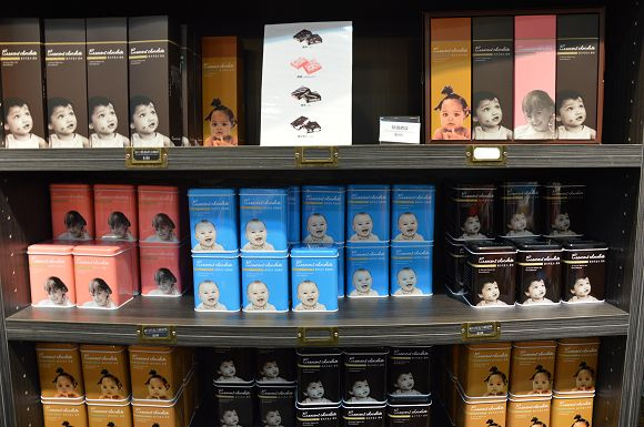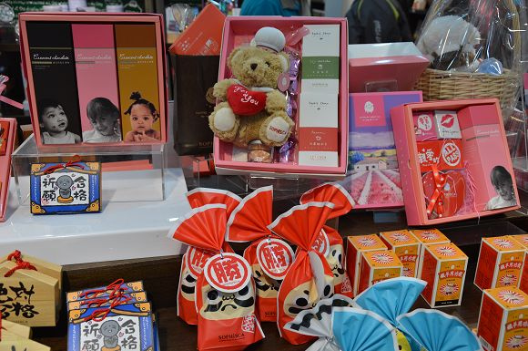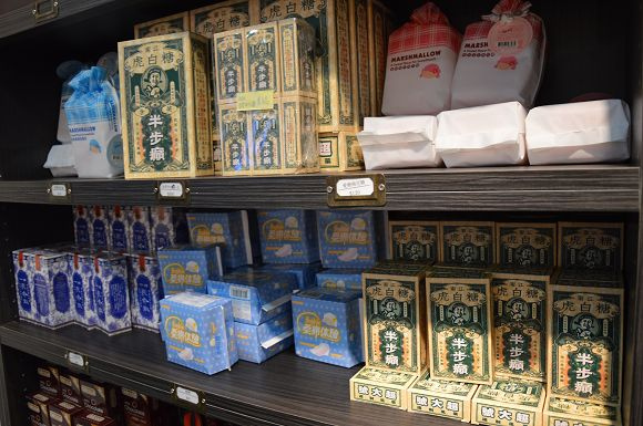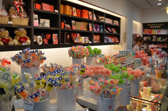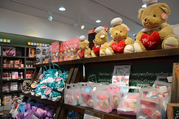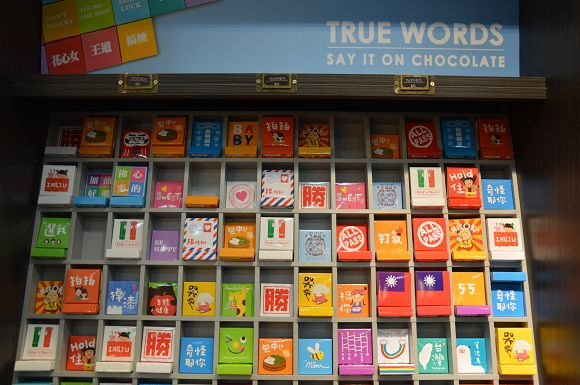 這裡不只販售糖果,也有巧克力、棉花糖等商品。像這面牆就趣味十足,滿滿的「告白巧克力」,可以自由選擇,送給喜歡的人。