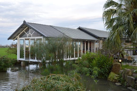 走出糖果屋,相鄰的咖啡館也十分引人注目,就好像座落於田野之間的玻璃屋。