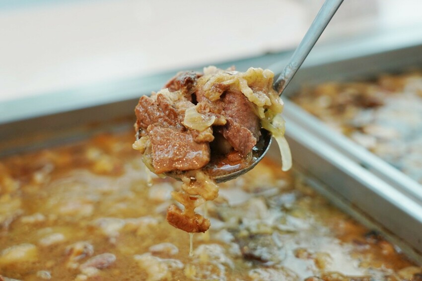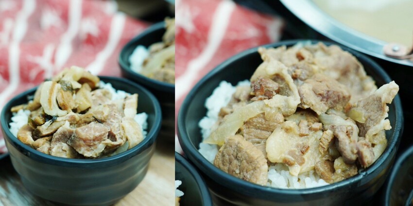 這提供的不是一般滷肉醬,是梅乾菜煮的梅干扣肉,與油油亮亮的和風牛肉,手切肉塊特別有口感,光這兩道就能扒好幾碗飯。